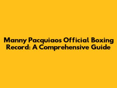 Manny Pacquiao's Official Boxing Record: A Comprehensive Guide