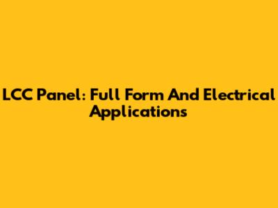 LCC Panel: Full Form And Electrical Applications
