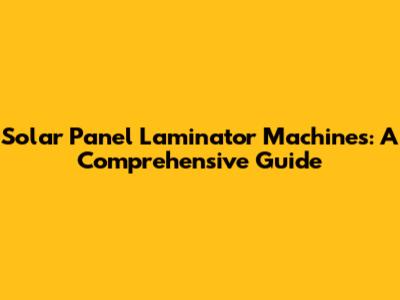 Solar Panel Laminator Machines: A Comprehensive Guide