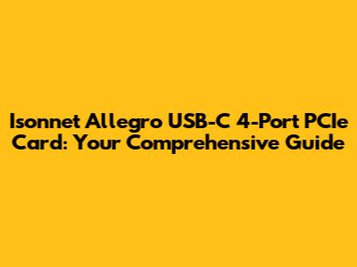 Hey everyone! Today, we're diving deep into the Isonnet Allegro USB-C 4-Port PCIe card. If you're looking to supercharge your computer's connectivity, especially with the latest USB-C devices, then you're in the right place. We'll explore everything from its features and benefits to how it stacks up against the competition and, of course, how to get it up and running smoothly. So, buckle up, because by the end of this, you'll be an expert on this handy little card. The Isonnet Allegro USB-C 4-Port PCIe card is designed to bring the power and convenience of USB-C to your desktop. But what exactly makes this card tick? We'll break it down, making sure you know everything there is to know. This card is a must-have for anyone looking to upgrade their connectivity game. With the increasing prevalence of USB-C devices – think external hard drives, high-resolution displays, and the latest smartphones – having a reliable and fast USB-C connection is more important than ever. This is where the Isonnet Allegro card comes in, offering a robust solution that can significantly enhance your workflow. Whether you're a creative professional, a gamer, or just someone who loves having the latest tech, this card has something to offer. We're talking about a significant upgrade in terms of speed, compatibility, and overall user experience. This card is not just about adding ports; it's about upgrading your entire digital experience.