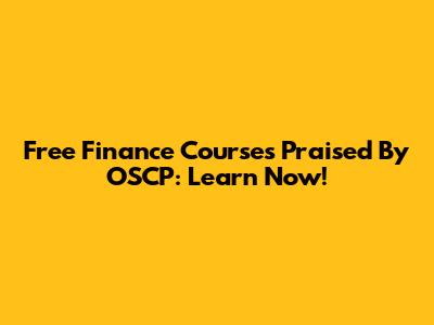 Free Finance Courses Praised By OSCP: Learn Now!