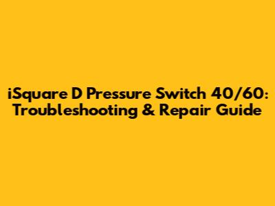 Hey there, DIY enthusiasts and anyone facing pressure switch woes! Today, we're diving deep into the iSquare D pressure switch 40/60, a common workhorse in many homes and industrial settings. If you're scratching your head because your water pump isn't behaving, or the pressure in your system is all over the place, you've come to the right place. This guide is your ultimate companion to understanding, troubleshooting, and repairing these essential components. We'll cover everything from the basics of how these switches work, to the common problems you might encounter, and the steps you can take to get your system back up and running smoothly. So, grab your tools, and let's get started!