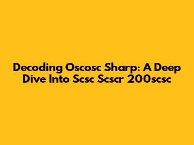Decoding Oscosc Sharp: A Deep Dive Into Scsc Scscr 200scsc