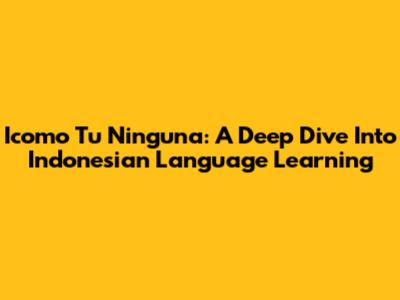 Icomo Tu Ninguna: A Deep Dive Into Indonesian Language Learning