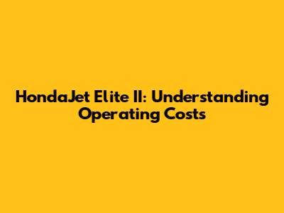 HondaJet Elite II: Understanding Operating Costs
