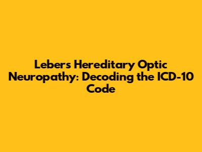 So, what is the specific ICD-10 code for Leber's Hereditary Optic Neuropathy? Well, it falls under the broader category of optic nerve disorders. The exact code helps identify the specific nature of the condition, in this case, a genetic optic neuropathy. The code is essential for correct diagnosis and record-keeping, but also influences treatment, and research efforts. Correct coding also helps with health data analysis, and allows health providers to track the incidence and prevalence of the disease, and to allocate resources effectively. By using this, doctors can create consistent records.