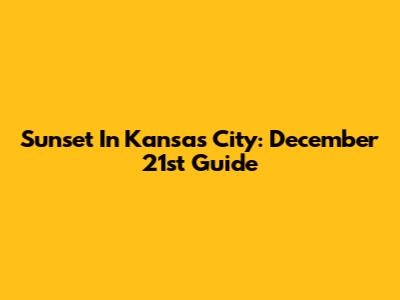 Sunset In Kansas City: December 21st Guide