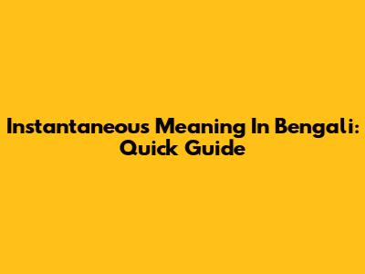 Instantaneous Meaning In Bengali: Quick Guide