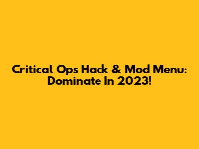 Critical Ops Hack & Mod Menu: Dominate In 2023!