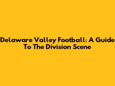 Delaware Valley Football: A Guide To The Division Scene