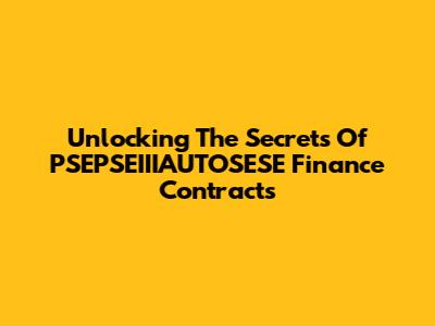 Unlocking The Secrets Of PSEPSEIIIAUTOSESE Finance Contracts