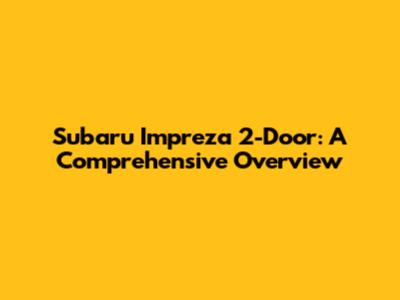Subaru Impreza 2-Door: A Comprehensive Overview