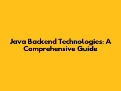 Java Backend Technologies: A Comprehensive Guide