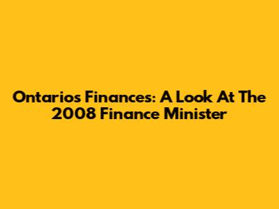 Ontario's Finances: A Look At The 2008 Finance Minister