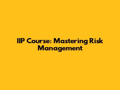 IIP Course: Mastering Risk Management