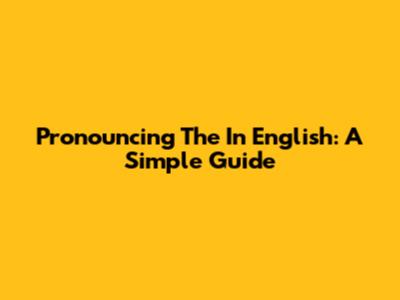 Pronouncing 'The' In English: A Simple Guide