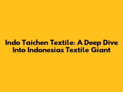 Indo Taichen Textile: A Deep Dive Into Indonesia's Textile Giant