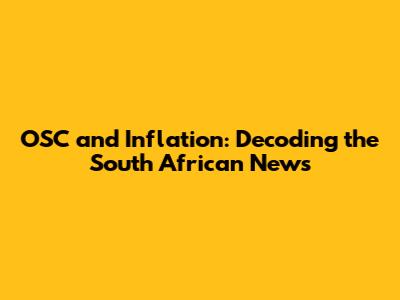 OSC, Inflation Crisis: News From South Africa