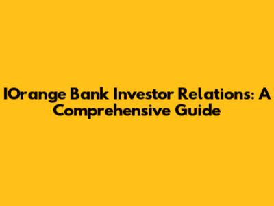 IOrange Bank Investor Relations: A Comprehensive Guide