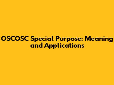 OSCOSC Special Purpose: Meaning And Applications