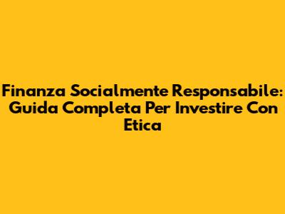 Finanza Socialmente Responsabile: Guida Completa Per Investire Con Etica