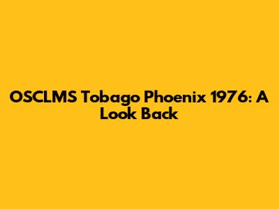 OSCLMS Tobago Phoenix 1976: A Look Back