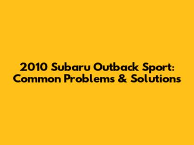 2010 Subaru Outback Sport: Common Problems & Solutions