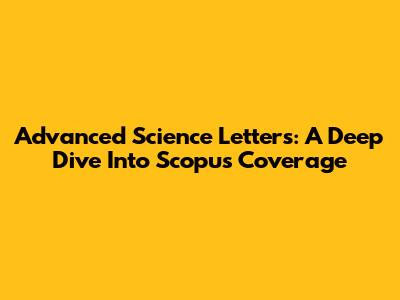 Advanced Science Letters: A Deep Dive Into Scopus Coverage
