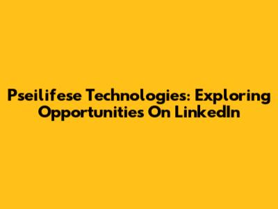 Pseilifese Technologies: Exploring Opportunities On LinkedIn