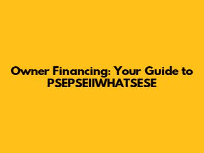 Hey everyone! Let's dive into the world of owner financing, specifically when it comes to PSEPSEIIWHATSESE. If you're scratching your head, don't worry – we'll break it all down in simple terms. Owner financing, sometimes called seller financing, is basically when the seller of a property acts as the bank. Instead of getting a loan from a traditional lender like a bank or credit union, you make payments directly to the seller. This can be a game-changer for both buyers and sellers, opening up opportunities that might not be available otherwise. Let's explore everything you need to know about owner financed PSEPSEIIWHATSESE properties. We'll look at the benefits, the drawbacks, and how to navigate the process. Trust me, by the end of this, you'll have a much clearer picture. So, whether you're a potential buyer or a seller considering this option, stick around! This is your guide to understanding how owner financing works, what to look out for, and how to make the most of this real estate strategy. We'll cover everything from the initial agreement to the final payoff, ensuring you're well-equipped to make informed decisions. Let's get started!