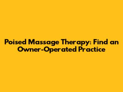 Poised Massage Therapy: Find An Owner Operated Practice