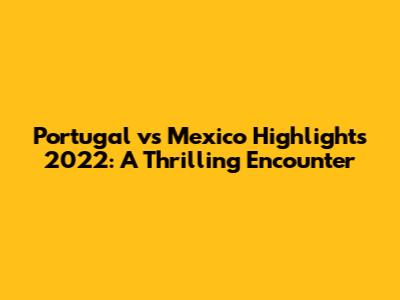 Hey guys! Let's dive into a recap of the Portugal vs. Mexico game from 2022! This match was a rollercoaster of emotions, showcasing some incredible talent and nail-biting moments. If you missed it, or just want to relive the excitement, you’re in the right place. We’re going to break down the key plays, the standout performances, and everything that made this game a memorable one. So grab your favorite snack, sit back, and let’s get started!