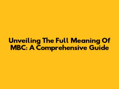 Unveiling The Full Meaning Of MBC: A Comprehensive Guide