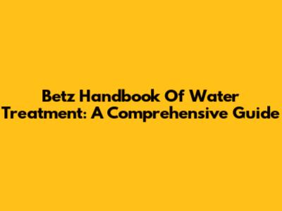 Betz Handbook Of Water Treatment: A Comprehensive Guide
