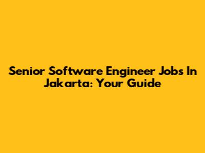 Senior Software Engineer Jobs In Jakarta: Your Guide