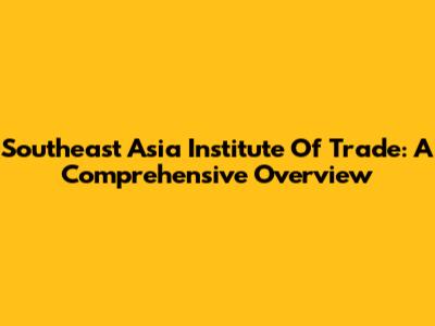 Southeast Asia Institute Of Trade: A Comprehensive Overview