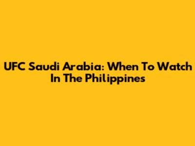 UFC Saudi Arabia: When To Watch In The Philippines