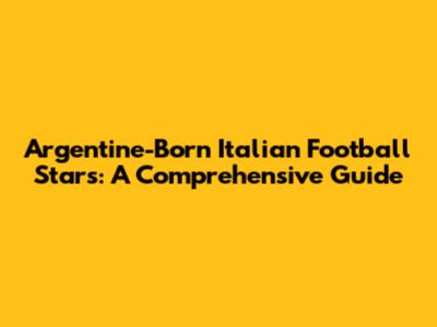 Argentine-Born Italian Football Stars: A Comprehensive Guide