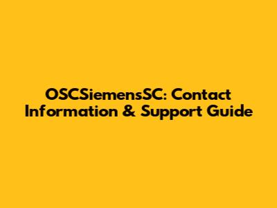 OSCSiemensSC: Contact Information & Support Guide