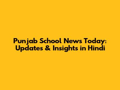 Punjab School News Today: Updates & Insights In Hindi