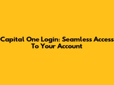 Capital One Login: Seamless Access To Your Account