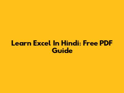 Learn Excel In Hindi: Free PDF Guide