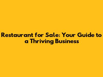 Restaurant For Sale: Your Guide To A Thriving Business