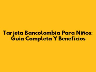 Tarjeta Bancolombia Para Niños: Guía Completa Y Beneficios