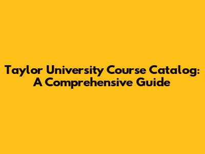 Taylor University Course Catalog: A Comprehensive Guide