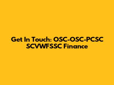 Get In Touch: OSC-OSC-PCSC SCVWFSSC Finance