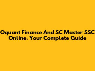 Oquant Finance And SC Master SSC Online: Your Complete Guide