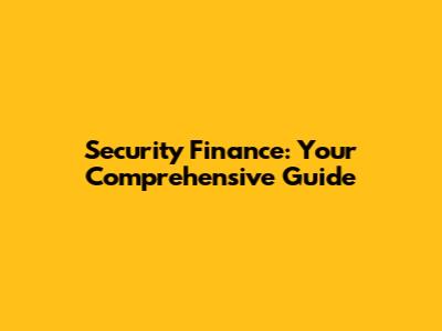 How Security Finance Works