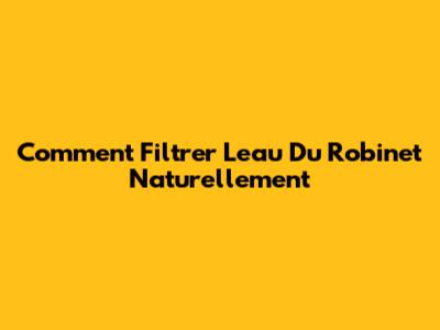 Comment Filtrer L'eau Du Robinet Naturellement