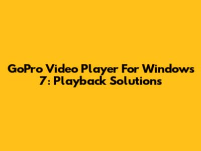 GoPro Video Player For Windows 7: Playback Solutions